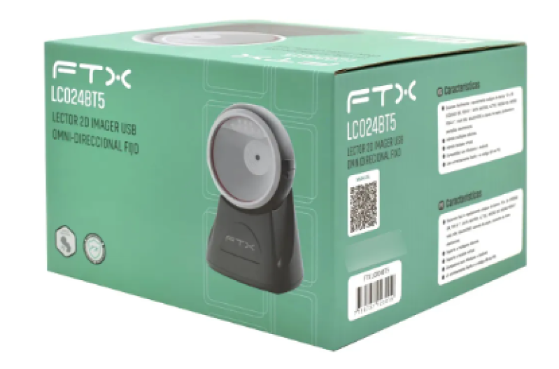 O FTX LC024BT5 é um leitor de código de barras fixo (de mesa), projetado para automação comercial que exige mãos livres e alta agilidade no checkout. Diferente de modelos manuais, ele opera de forma automática e omnidirecional, permitindo a leitura de códigos em diversos ângulos sem a necessidade de alinhar perfeitamente o produto.