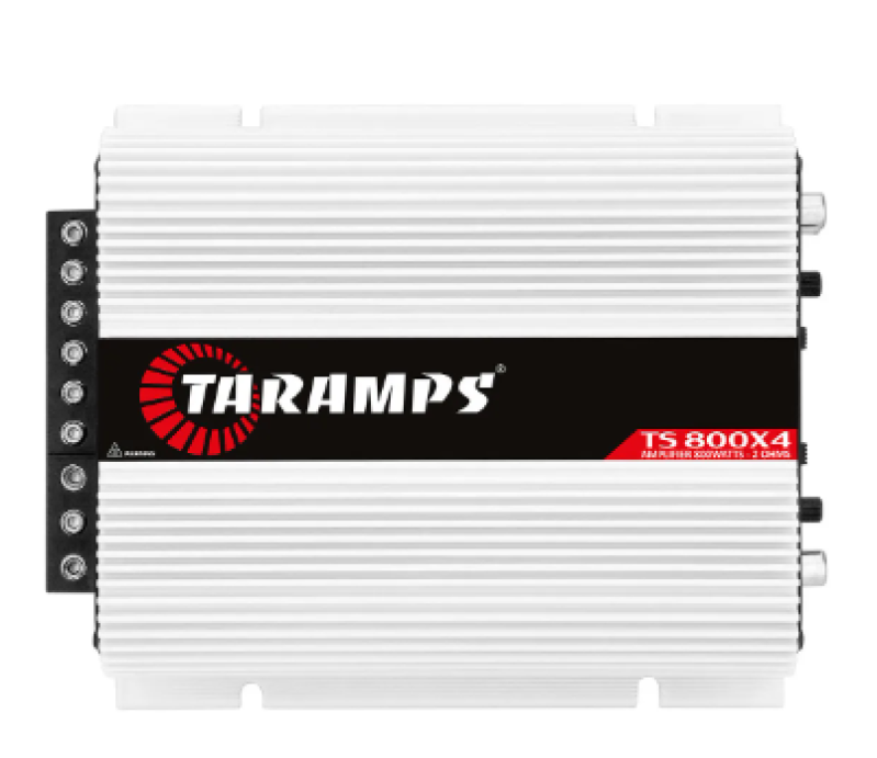 O Taramps TS 800x4 é um amplificador digital da linha compacta da Taramps, reconhecido por sua alta eficiência e versatilidade em sistemas de som automotivo. Ele é um módulo de 4 canais, ideal para tocar desde alto-falantes de portas (triaxiais/kit duas vias) até subwoofers leves em modo bridge.