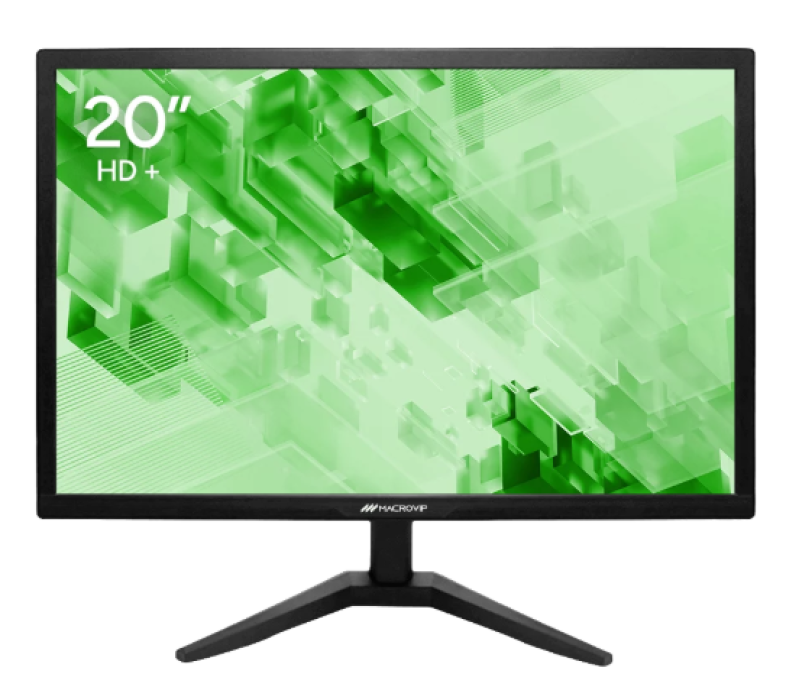 O monitor Macrovip de 20 polegadas (modelo MV-DM20HP) é um dispositivo de entrada focado em produtividade e uso cotidiano, oferecendo resolução HD+ e taxa de atualização de 75Hz.