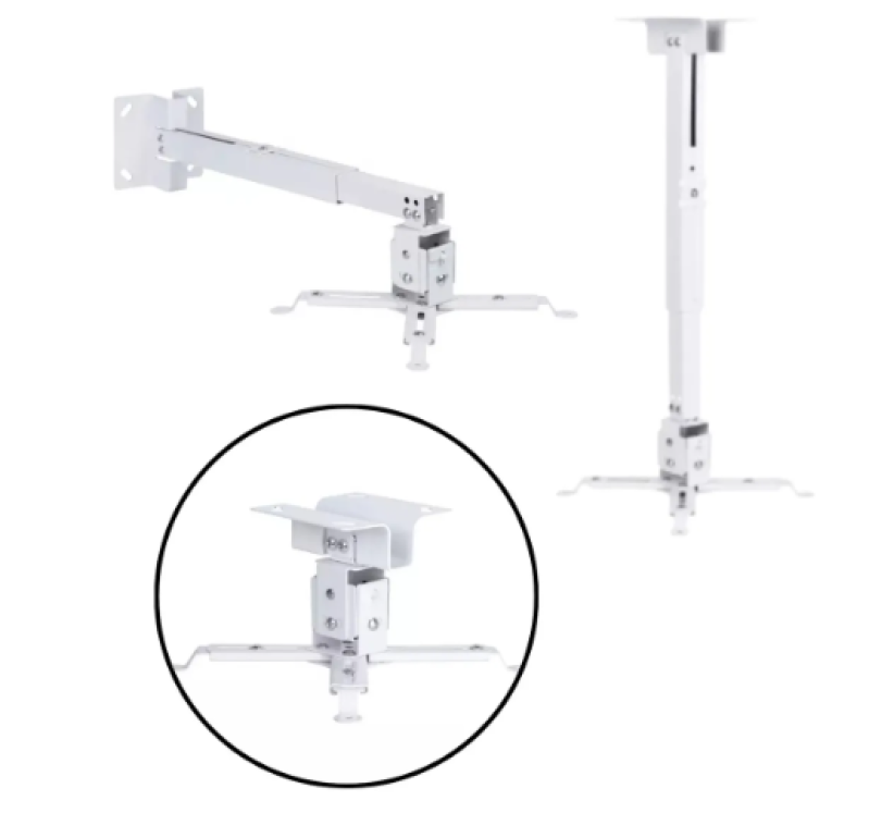 Um suporte para projetor (data show) é um acessório de fixação projetado para posicionar o projetor de forma segura e estável, garantindo o alinhamento ideal da imagem na tela ou parede.